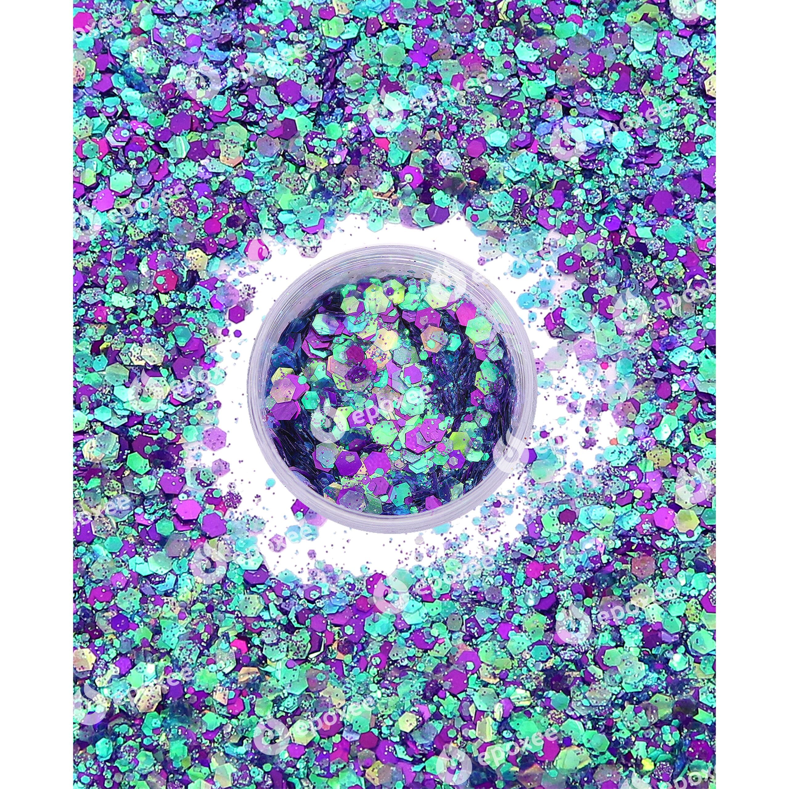 - Több árnyalatú, holografikus hatszögű glitterek