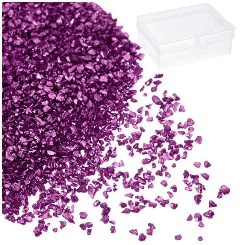 A lila színű tört, zúzott dekor üveg 50 g-os kiszerelésben, 1–3 mm-es szemcsemérettel rendelkezik, egész keresztmetszetében színezett. Alapanyaga epoxy gyantával kobinálva a lakás dekoroknak, kulcstartóknak.